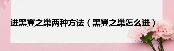 進黑翼之巢兩種方法(黑翼之巢怎么進)