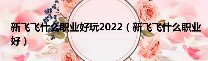 新飛飛什么職業好玩2022(新飛飛什么職業好)