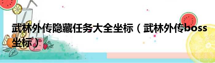 武林外傳隱藏任務大全坐標(武林外傳boss坐標)