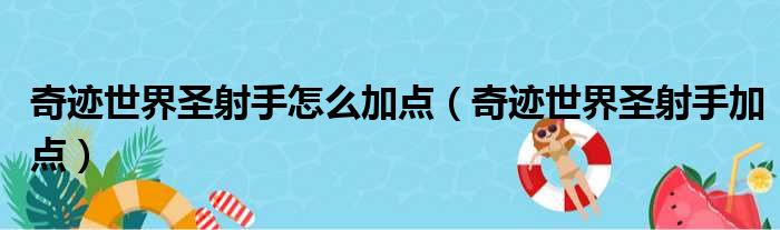 奇跡世界圣射手怎么加點(奇跡世界圣射手加點)