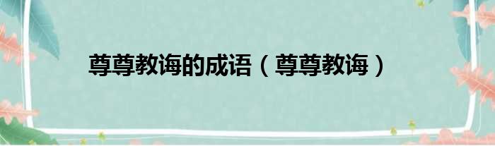 大家好,小霞來為大家解答以上的問題。尊尊教誨的成語,尊尊教誨這個很多人還不知道,現在讓我們一起來看看吧!