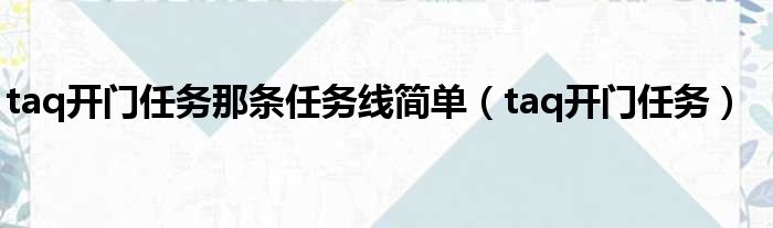大家好,小霞來為大家解答以上的問題。taq開門任務那條任務線簡單,taq開門任務這個很多人還不知道,現在讓我們一起來看看吧!