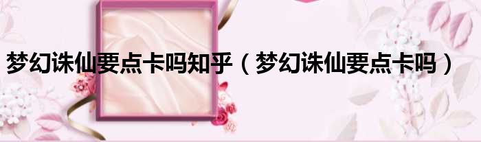 夢幻誅仙要點卡嗎知乎(夢幻誅仙要點卡嗎)