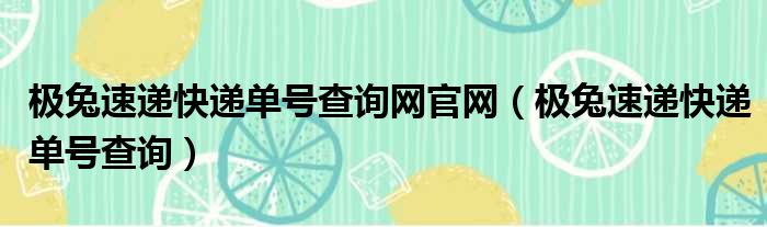 極兔速遞快遞單號查詢網官網(極兔速遞快遞單號查詢)