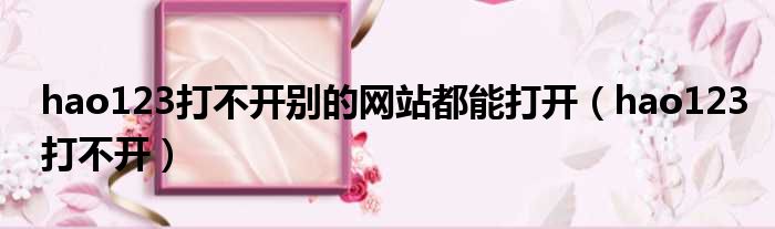 大家好,小霞來為大家解答以上的問題。hao123打不開別的網站都能打開,hao123打不開這個很多人還不知道,現在讓我們一起來看看吧!