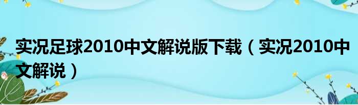 實況足球2010中文解說版下載(實況2010中文解說)