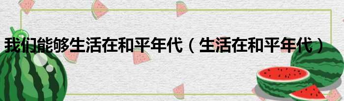 大家好,小霞來為大家解答以上的問題。我們能夠生活在和平年代,生活在和平年代這個很多人還不知道,現在讓我們一起來看看吧!