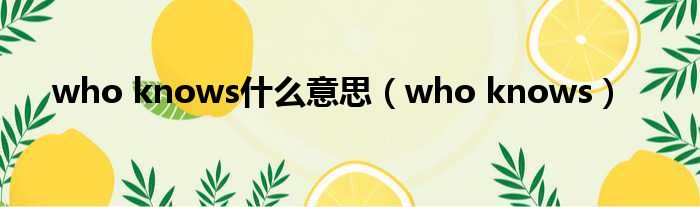 大家好,小霞來為大家解答以上的問題。who knows什么意思,who knows這個很多人還不知道,現在讓我們一起來看看吧!
