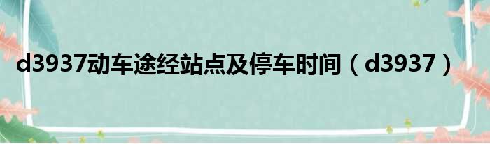導讀 大家好,小霞來為大家解答以上的問題。d3937動車途經站點及停車時間,d3937這個很多人還不知道,現在讓我們一起來看看吧!1、車次:D3937 D39