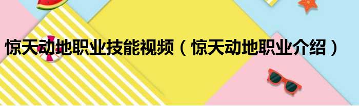 驚天動地職業技能視頻(驚天動地職業介紹)