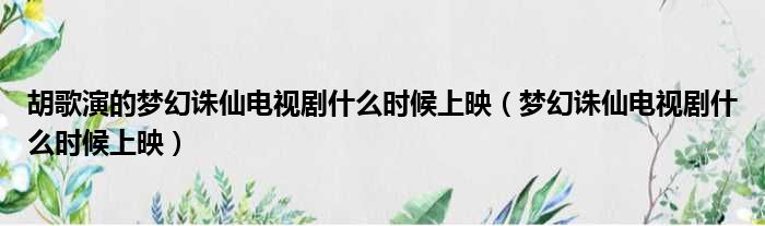 胡歌演的夢幻誅仙電視劇什么時候上映(夢幻誅仙電視劇什么時候上映)