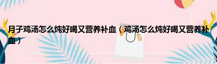 月子雞湯怎么燉好喝又營養補血(雞湯怎么燉好喝又營養補血)