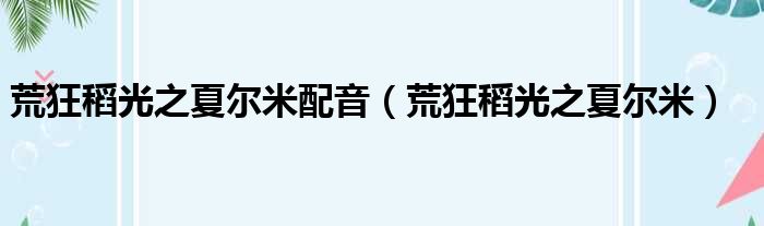 大家好,小霞來為大家解答以上的問題。荒狂稻光之夏爾米配音,荒狂稻光之夏爾米這個很多人還不知道,現在讓我們一起來看看吧!