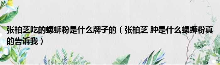 張柏芝吃的螺螄粉是什么牌子的(張柏芝 腫是什么螺螄粉真的告訴我)
