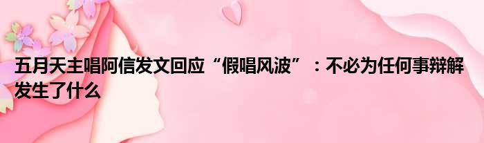 【五月天主唱阿信發文回應“假唱風波”:不必為任何事辯解】下面大家可以一起來看看具體是什么情況!