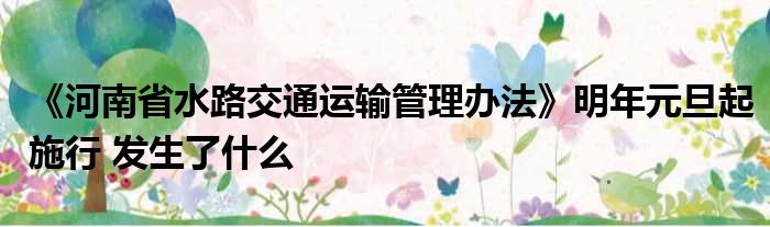 【《河南省水路交通運輸管理辦法》明年元旦起施行】下面大家可以一起來看看具體是什么情況!