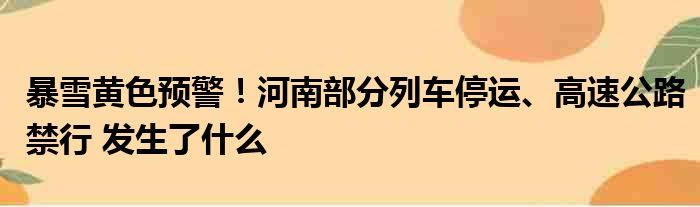 【暴雪黃色預警!河南部分列車停運、高速公路禁行】下面大家可以一起來看看具體是什么情況!