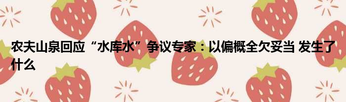 【農夫山泉回應“水庫水”爭議,專家:以偏概全欠妥當】下面大家可以一起來看看具體是什么情況!