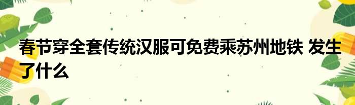 【春節穿全套傳統漢服可免費乘蘇州地鐵】下面大家可以一起來看看具體是什么情況!