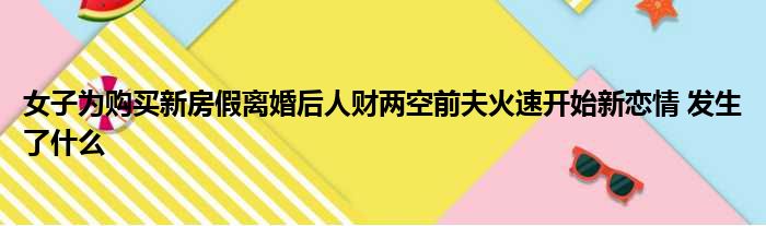 【女子為購買新房假離婚后人財兩空,前夫火速開始新戀情】下面大家可以一起來看看具體是什么情況!