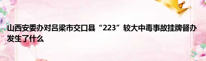 山西安委辦對呂梁市交口縣“223”較大中毒事故掛牌督辦 發生了什么