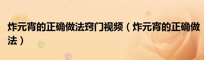 炸元宵的正確做法竅門視頻(炸元宵的正確做法)
