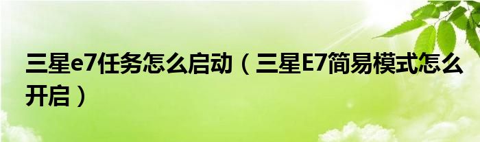 三星e7任務怎么啟動(三星E7簡易模式怎么開啟)