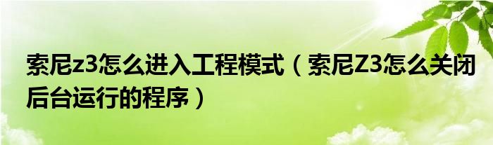 索尼z3怎么進入工程模式(索尼Z3怎么關閉后臺運行的程序)