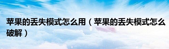蘋果的丟失模式怎么用(蘋果的丟失模式怎么破解)