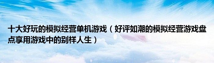 導讀 大家好,小源來為大家解答以上問題。十大好玩的模擬經營單機游戲,好評如潮的模擬經營游戲盤點享用游戲中的別樣人生很多人還不知道,現在讓