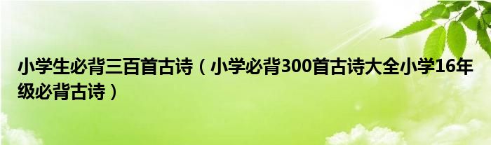 小學生必背三百首古詩(小學必背300首古詩大全小學16年級必背古詩)