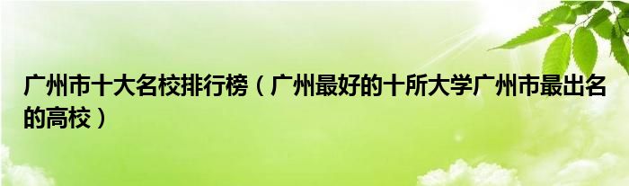 導讀 大家好,小源來為大家解答以上問題。廣州市十大名校排行榜,廣州最好的十所大學廣州市最出名的高校很多人還不知道,現在讓我們一起來看看吧