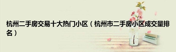 杭州二手房交易十大熱門小區(杭州市二手房小區成交量排名)