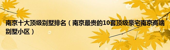 導讀 大家好,小源來為大家解答以上問題。南京十大頂級別墅排名,南京最貴的10套頂級豪宅南京高端別墅小區很多人還不知道,現在讓我們一起來看看
