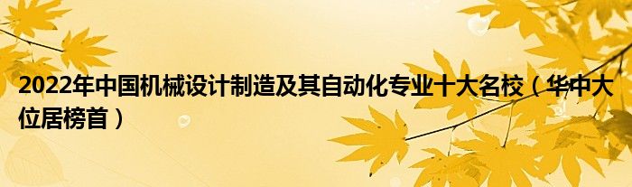 導讀 大家好,小源來為大家解答以上問題。2022年中國機械設計制造及其自動化專業十大名校,華中大位居榜首很多人還不知道,現在讓我們一起來看看