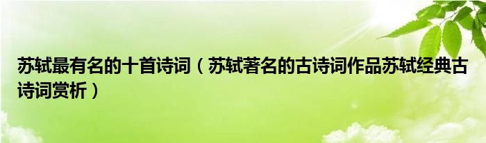 蘇軾最有名的十首詩詞(蘇軾著名的古詩詞作品蘇軾經典古詩詞賞析)