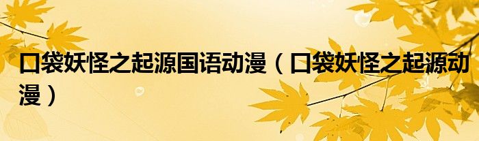 口袋妖怪之起源國語動漫(口袋妖怪之起源動漫)