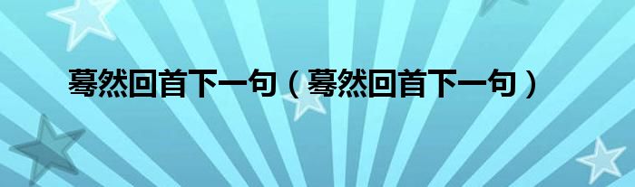 大家好,小霞來為大家解答以上的問題。驀然回首下一句,驀然回首下一句這個很多人還不知道,現在讓我們一起來看看吧!