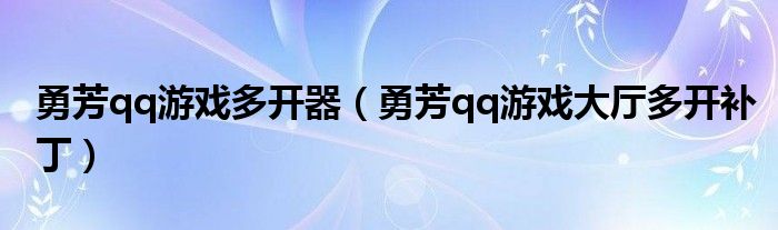 勇芳qq游戲多開器(勇芳qq游戲大廳多開補丁)