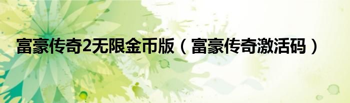 富豪傳奇2無限金幣版(富豪傳奇激活碼)