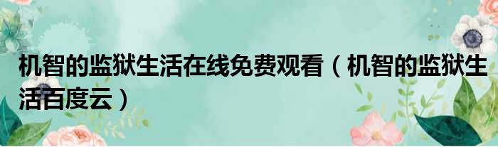 機智的監獄生活在線免費觀看(機智的監獄生活百度云)