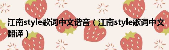 大家好,小霞來為大家解答以上的問題。江南style歌詞中文諧音,江南style歌詞中文翻譯這個很多人還不知道,現在讓我們一起來看看吧!