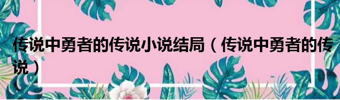 傳說中勇者的傳說小說結局(傳說中勇者的傳說)
