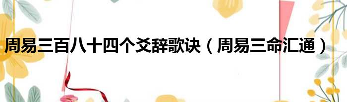 周易三百八十四個爻辭歌訣(周易三命匯通)