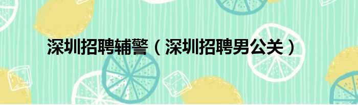 深圳招聘輔警(深圳招聘男公關)