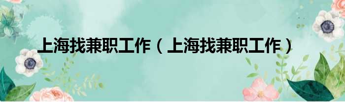 上海找兼職工作(上海找兼職工作)