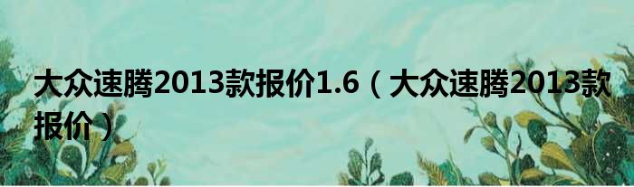 大眾速騰2013款報價1.6(大眾速騰2013款報價)