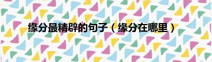 大家好,小霞來為大家解答以上的問題。緣分最精辟的句子,緣分在哪里這個很多人還不知道,現在讓我們一起來看看吧!