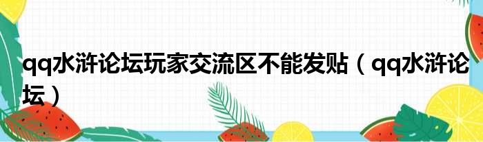 qq水滸論壇玩家交流區不能發貼(qq水滸論壇)