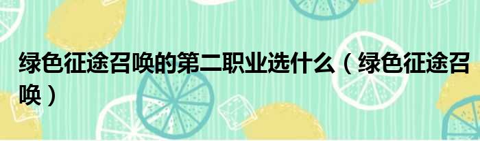 綠色征途召喚的第二職業選什么(綠色征途召喚)